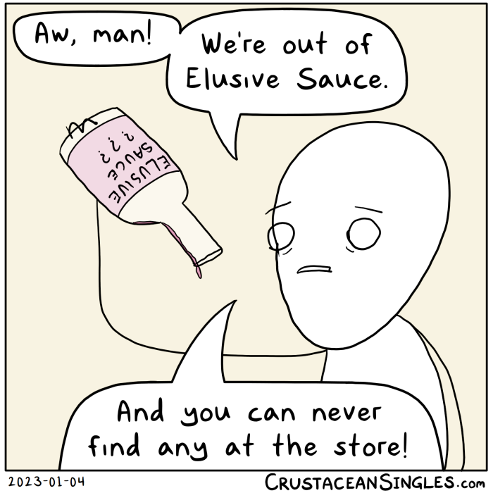 "The most delicious sauce can be hard to find. Elusive Sauce™: Good luck getting some."